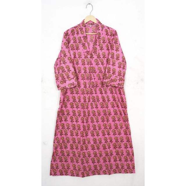 ชุดเดรสยาวถึงพื้นทำจากผ้าฝ้ายลำลองสำหรับผู้หญิงซักได้ทอมีรอบเอวและกระเป๋าตามธรรมชาติสำหรับฤดูร้อน