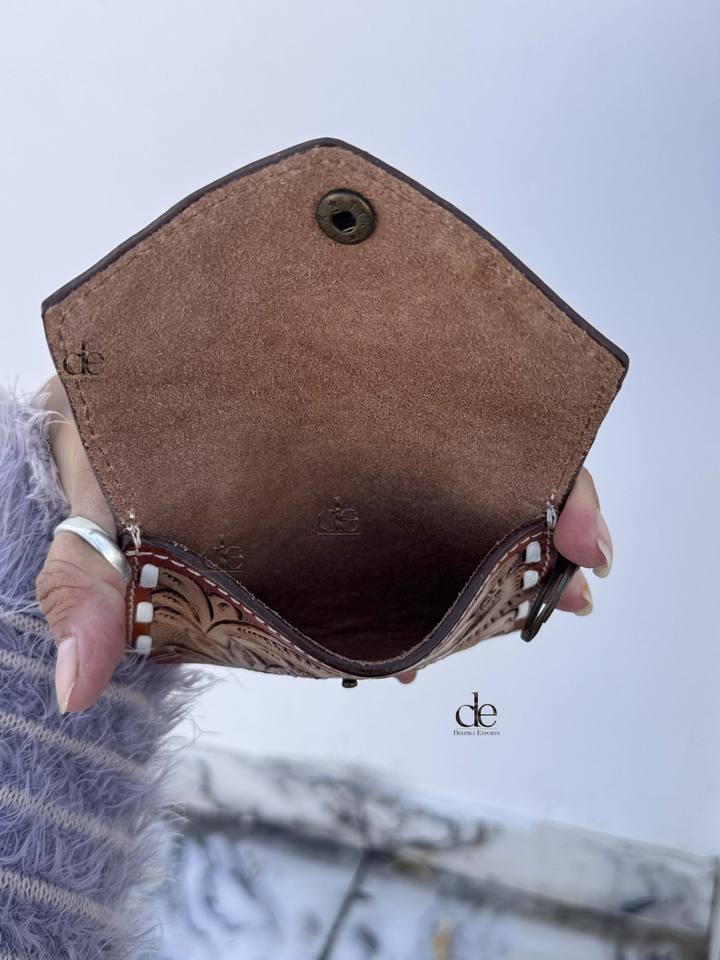กระเป๋าใส่เหรียญหนังแกะสลักด้วยมือสำหรับผู้หญิงกระเป๋าคลัทช์มีสไตล์กระเป๋าคลัทช์หนังแท้ขนาดเล็กใช้ได้ทั้งชายและหญิง