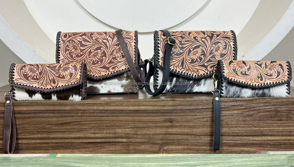 ชุดกระเป๋าถือ2ชิ้นหนังแท้สำหรับผู้หญิง, กระเป๋าหนังวัวคาดลำตัวพร้อมกระเป๋าสตางค์ที่เข้ากันชุดกระเป๋าถือหนังแท้สไตล์ตะวันตก