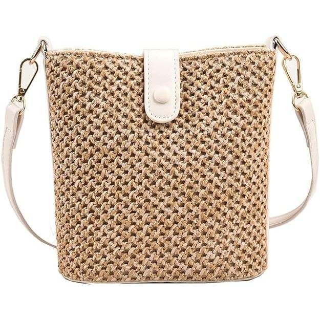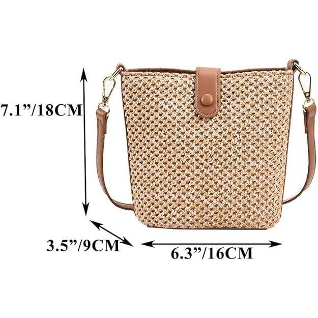 Dreamcraft กระเป๋าสะพายข้างหวายสานด้วยมือของผู้หญิงมีสายหนังคลัทช์ฤดูร้อนสำหรับปิกนิกชายหาด/วันหยุด (เวียดนาม)