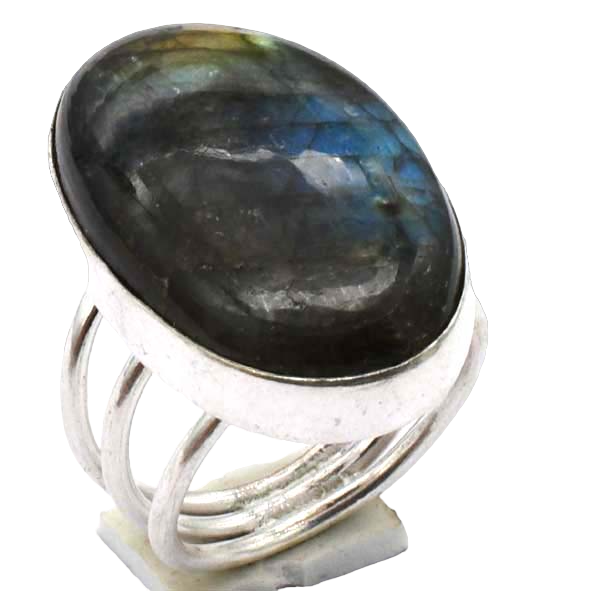 แหวนพลอยลาบราดอไรต์ชุบเงินดีไซน์เนอร์ทำด้วยมือสำหรับผู้หญิงผู้ชายขนาด6-9วง