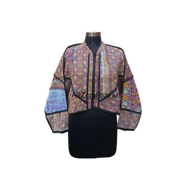 เสื้อแจ็คเก็ตกุดารีทำมือสำหรับผู้หญิง ผ้าฝ้ายหนานุ่มสไตล์อินเดีย หลากสี วินเทจ ผ้าฝ้ายคันธาแท้ 100% ลายชนเผ่า