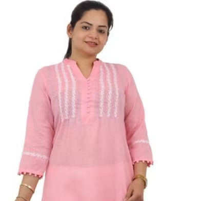 ชุดคอตตอนแท้ทรงเอไลน์ทำด้วยมือสำหรับผู้หญิงชุดปาร์ตี้สีชมพูล้วนผลิตจากเสื้อผ้าอินเดียและปากีสถาน