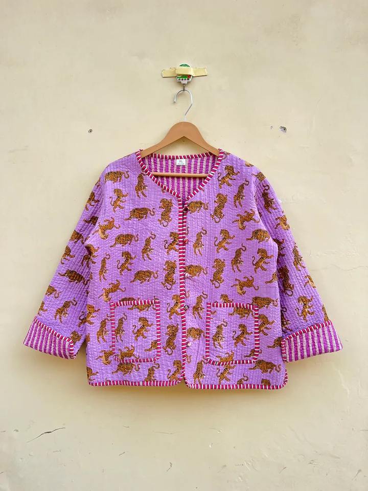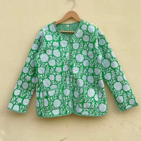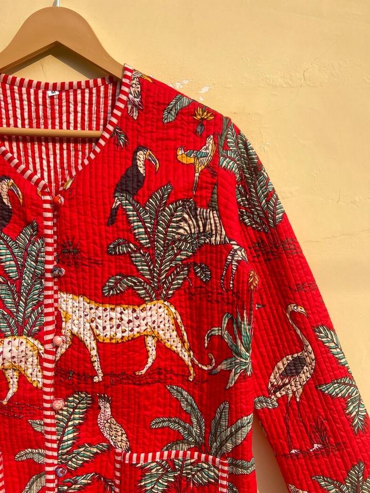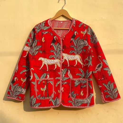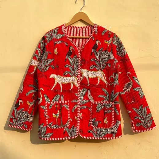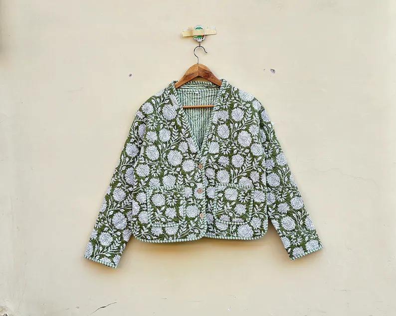 เสื้อโค้ทแจ็กเก็ตสำหรับฤดูหนาวพิมพ์ลายดอกไม้ผ้าฝ้ายโบฮีเมียนทรงแบบกลับด้านได้ทำด้วยมือ