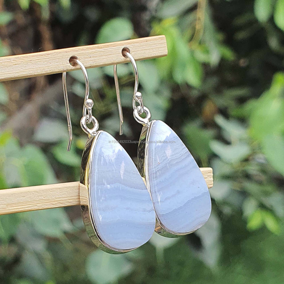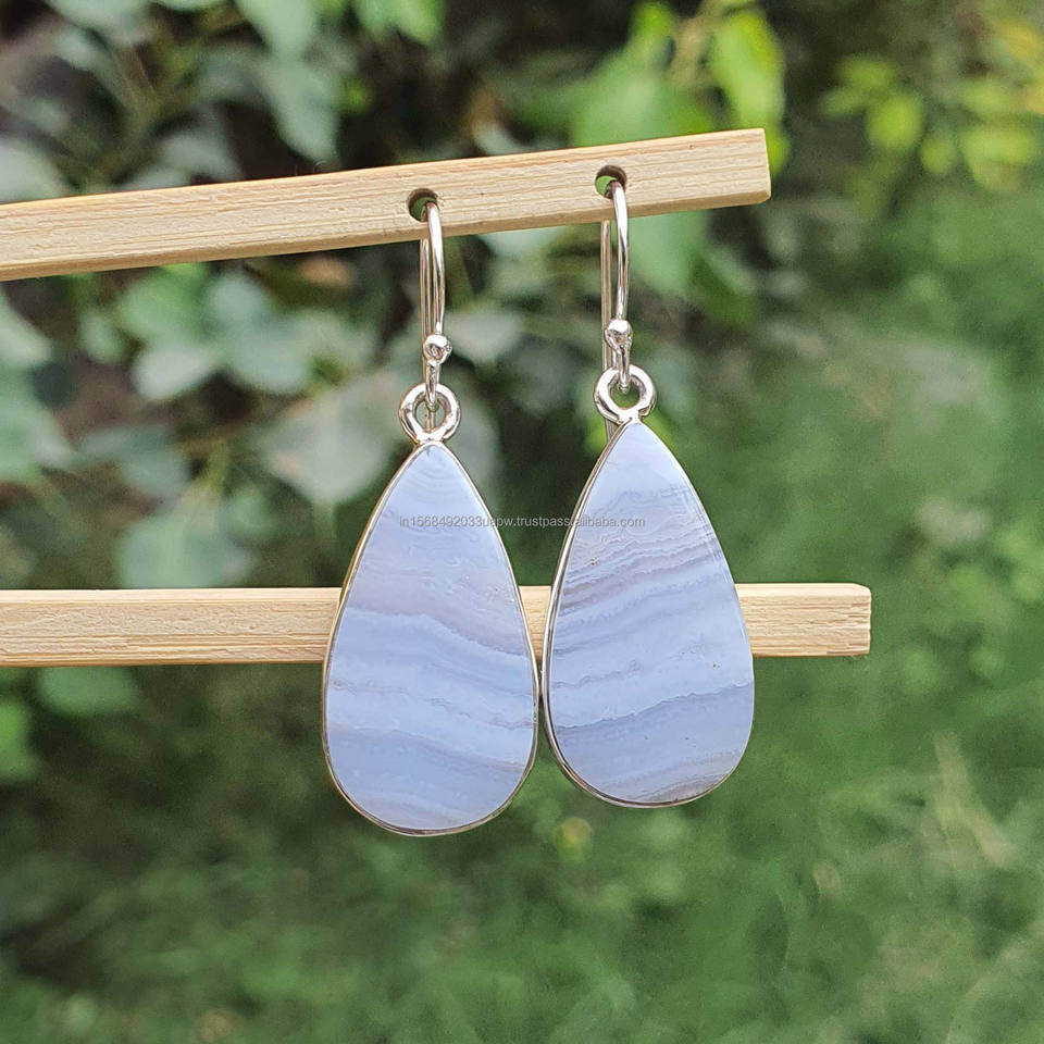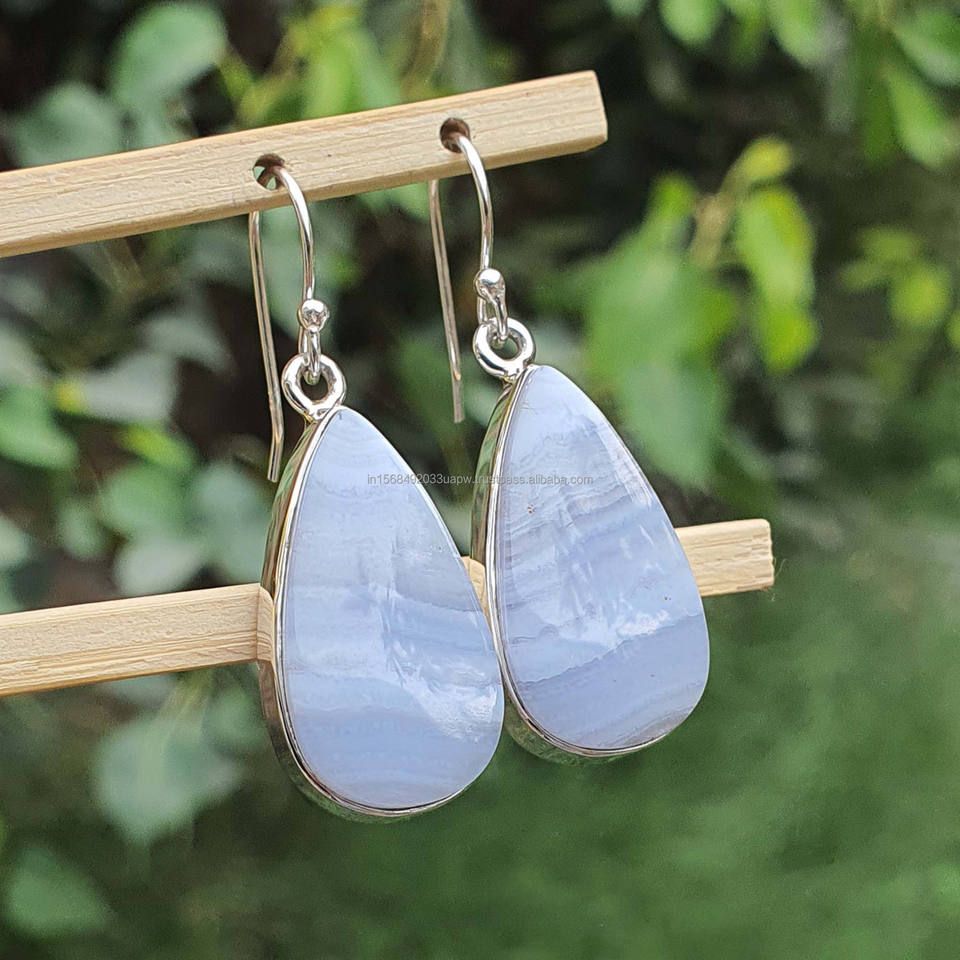 Jewelry Name:925 Sterling Silver Natural Blue Lace Agate Dangle Earrings