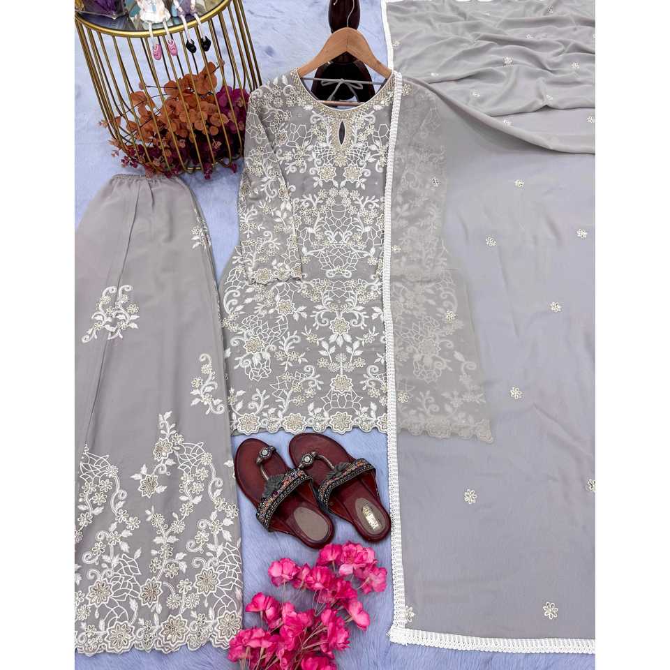 เสื้อ georgette เทียมหนักของผู้หญิง & ชุด plazzo พร้อม Dupatta สำหรับใส่ไปงานปาร์ตี้