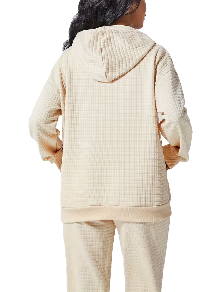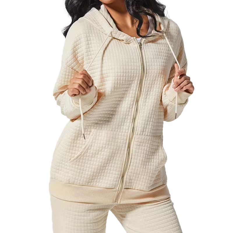 ชุดวอร์มผู้หญิงแบบมีฮู้ดสำหรับฤดูหนาว ผ้าฟลีซเนื้อหนา 100% ผ้าฝ้าย ระบายอากาศได้ดี ชุด 2 ชิ้น สปอร์ตแวร์ เป็นมิตรกับสิ่งแวดล้อม รับผลิตแบบ OEM