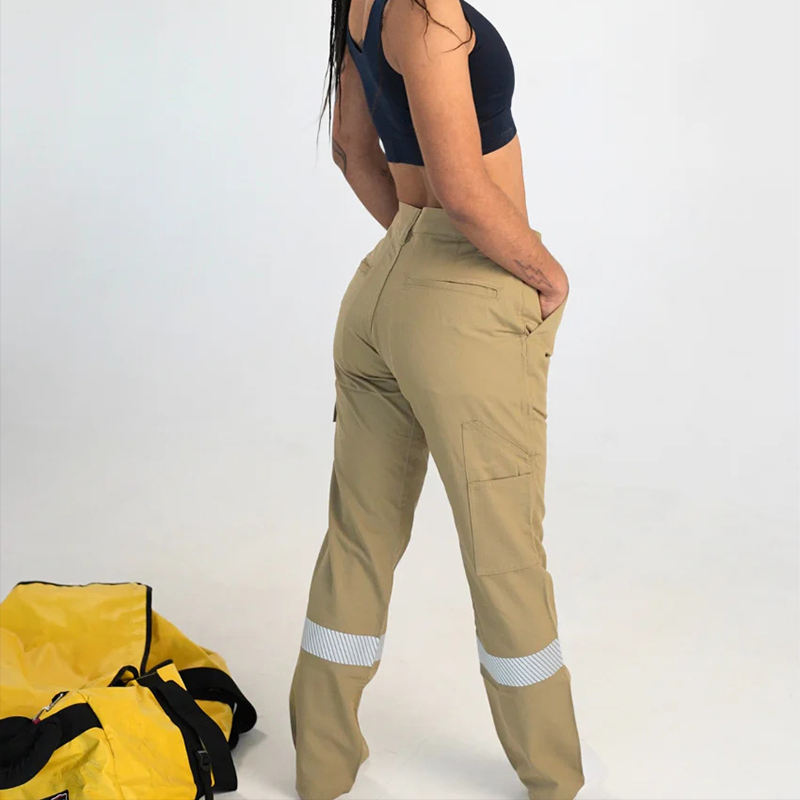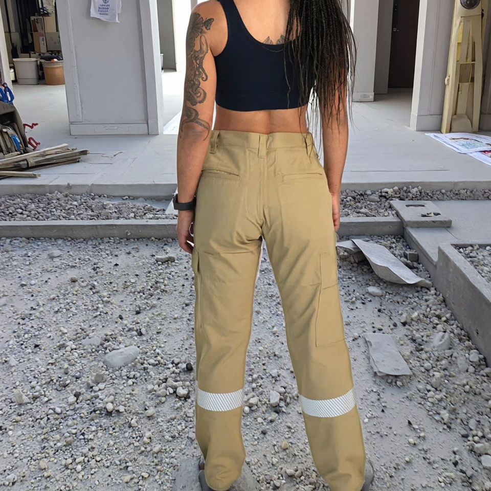 กางเกงทำงานทรงหลวมสำหรับผู้หญิงเอวสูงมีหลายกระเป๋าเพื่อความปลอดภัย