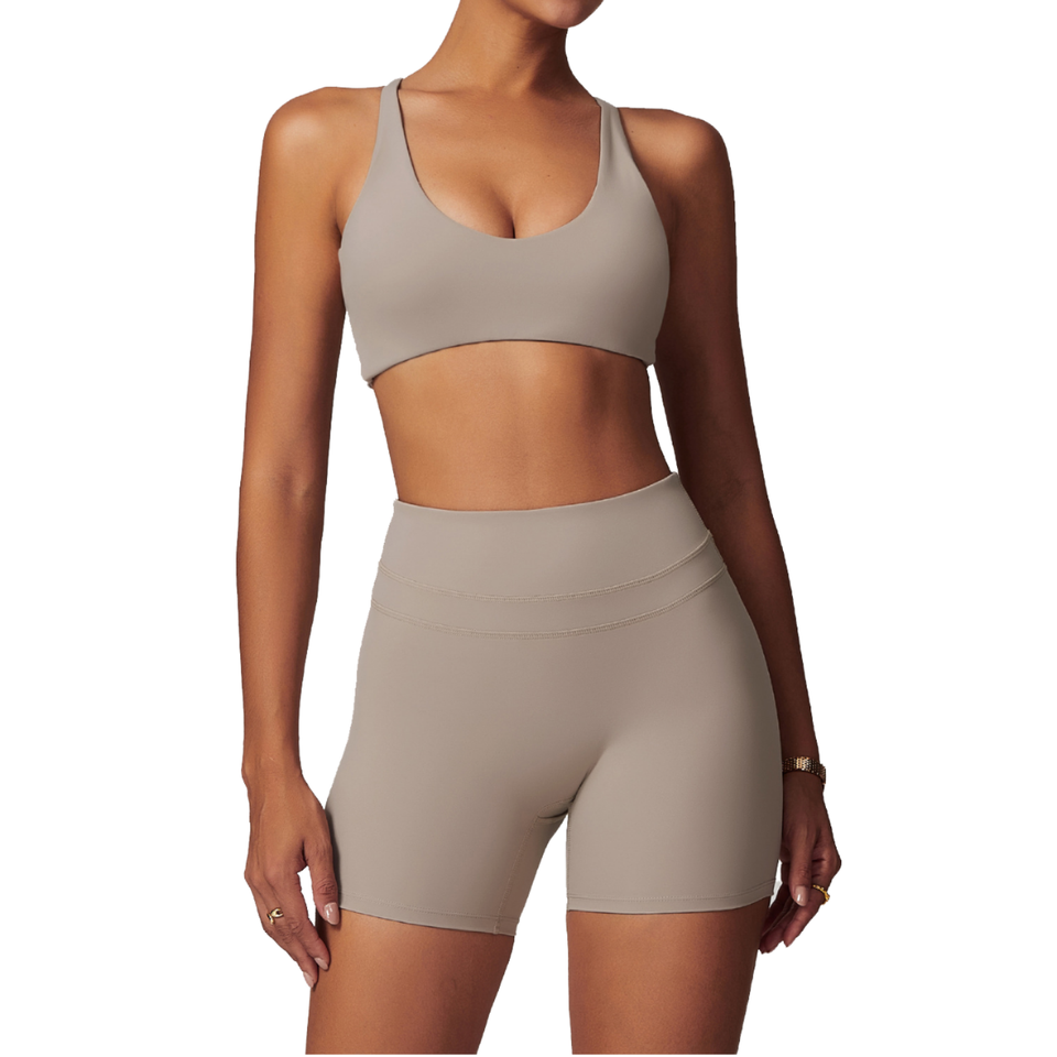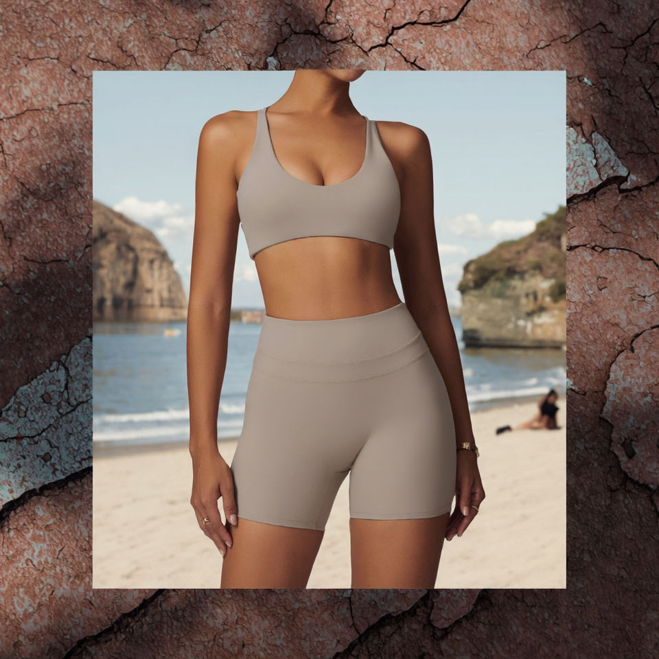 ชุดสายรัดเอวทรง Y ยืดหยุ่นสูงสำหรับผู้หญิงชุดออกกำลังกายเซ็กซี่เปลือยหลังมีกระเป๋ากางเกงขาสั้นออกแบบโลโก้ได้เองเอวสีทึบสวมใส่ได้