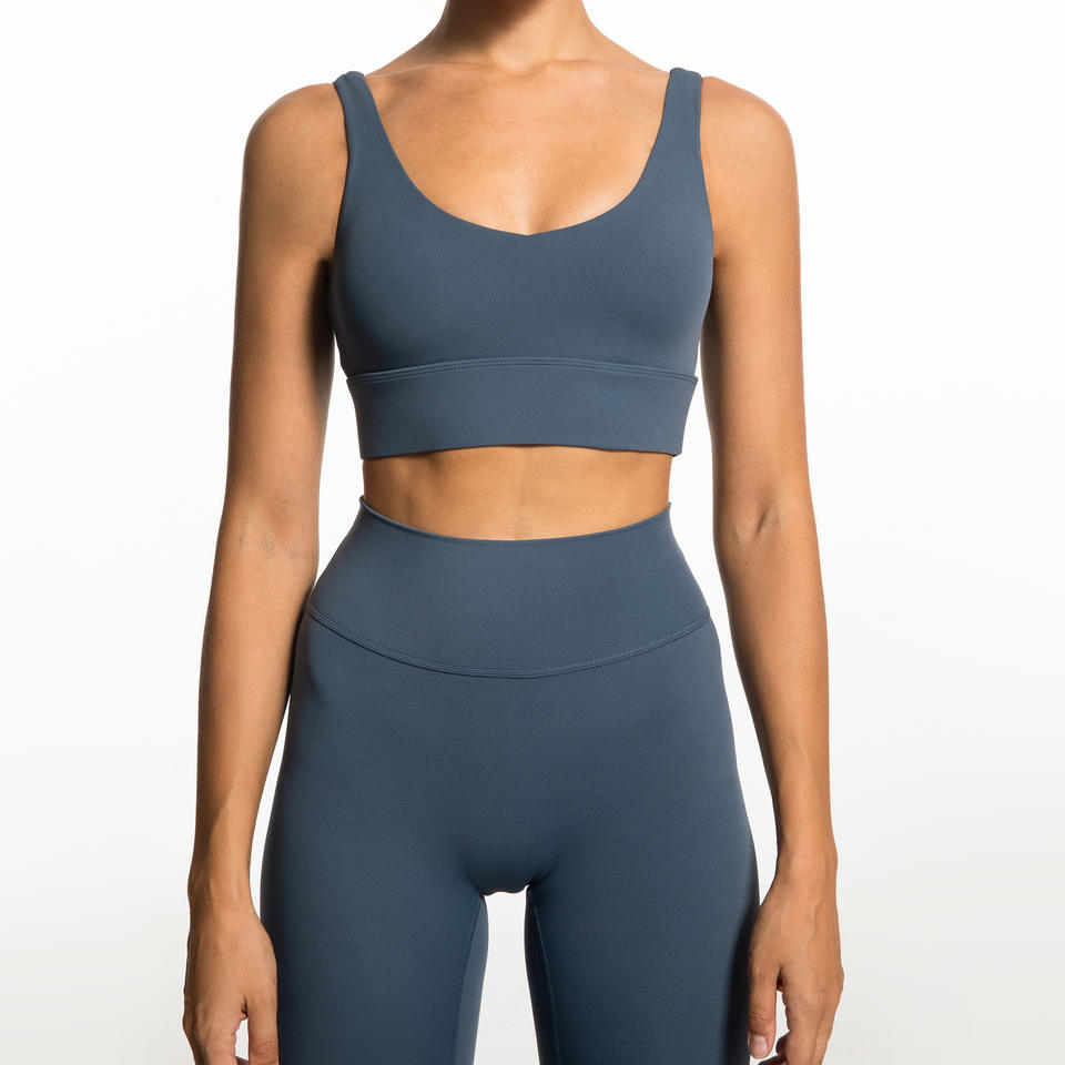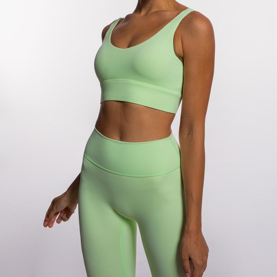 ชุดออกกำลังกายเอวสูงยืดหยุ่นของผู้หญิงชุดโยคะสองชิ้นแบบระบายอากาศได้และน้ำหนักเบาสำหรับฤดูร้อน