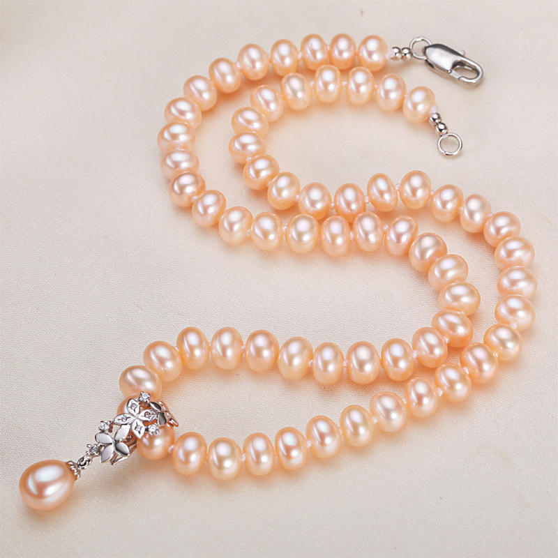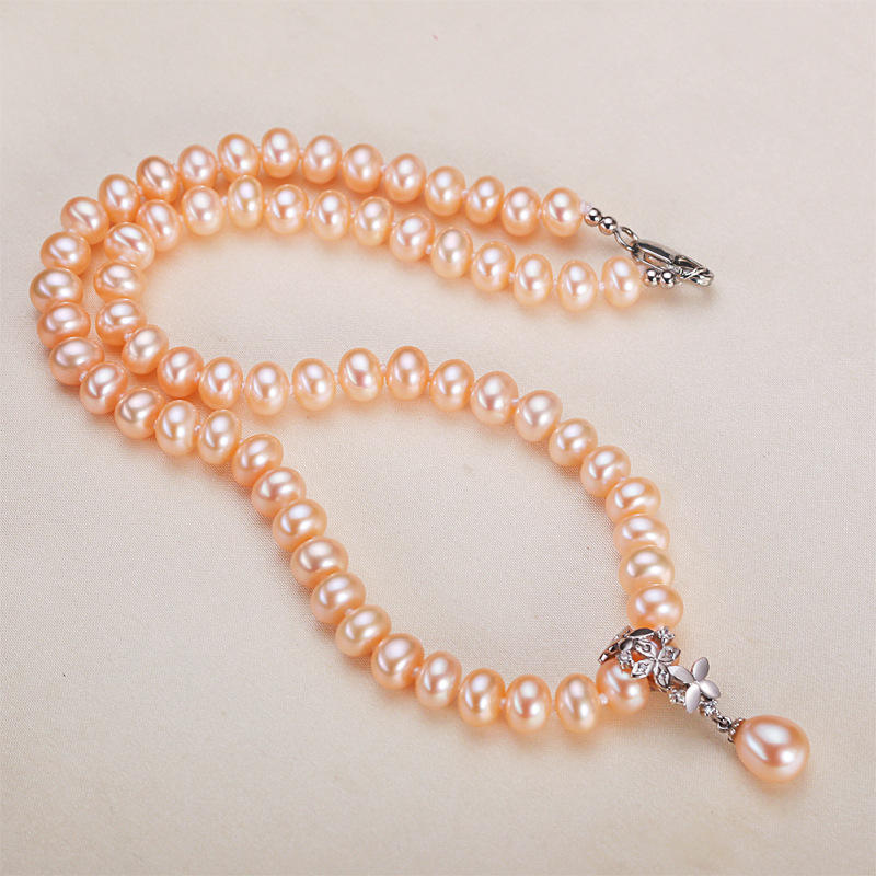 สร้อยคอมุกน้ำจืดสีขาวแบน 8 มม. ระดับไฮเอนด์สำหรับผู้หญิง สร้อยคอแบบไม่ติดกระดูกไหปลาร้า ให้ความรู้สึกหรูหราเบาๆ