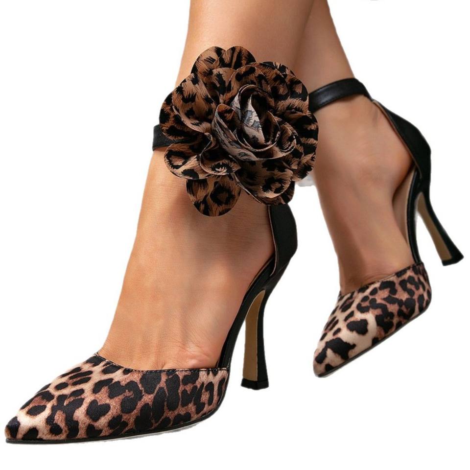 รองเท้าส้นสูงลายเสือดาวสำหรับผู้หญิง รองเท้าแฟชั่นสไตล์ยุโรปและอเมริกาแบบใหม่ รองเท้าสำหรับงานปาร์ตี้