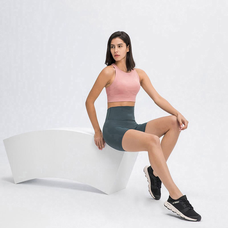 เสื้อกีฬาผู้หญิงแบบไม่มีสายรัดสำหรับออกกำลังกายแบบเข้มข้น เสื้อโยคะแบบมีฟองน้ำในตัว บราออกกำลังกายแบบยาว ทรงเข้ารูป ซัพพอร์ตสูง ป้องกันรังสียูวี ถอดออกได้