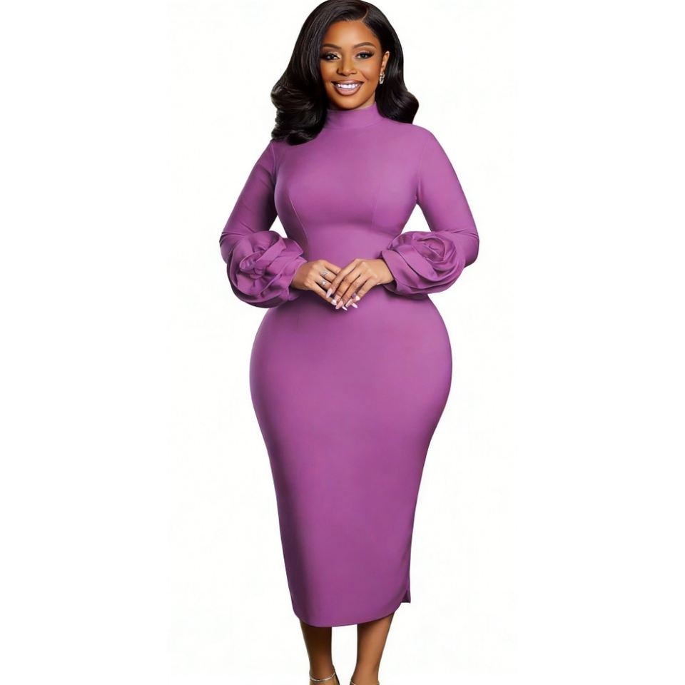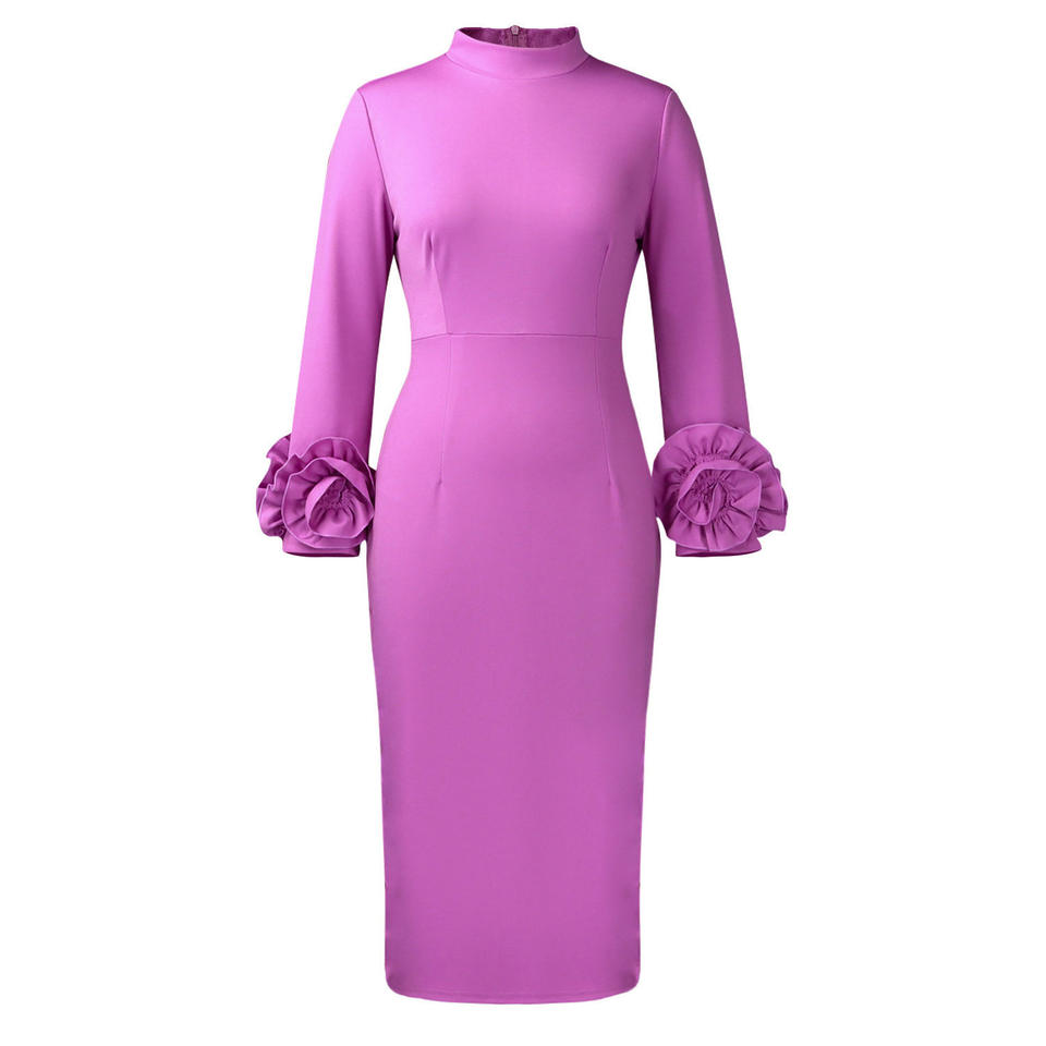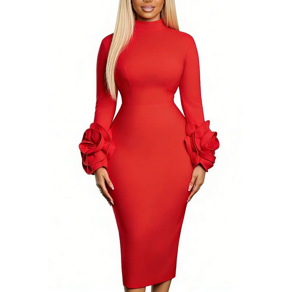 เดรสทรงบอดี้คอนคอสูงสำหรับผู้หญิง - ชุดเดรสแฟชั่นสไตล์แอฟริกันสำหรับผู้หญิง แต่งลายดอกไม้ 3 มิติ