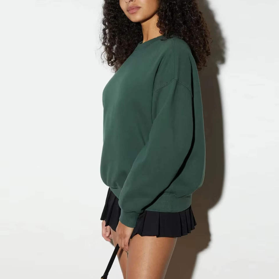 เสื้อสเวตเชิ้ตผู้หญิงคุณภาพสูง ผ้าฝ้ายฟลีซ 100% เนื้อหนา สีชมพูล้วน คอกลม สำหรับฤดูหนาว มีโลโก้ด้านหน้า ลายเรียบ