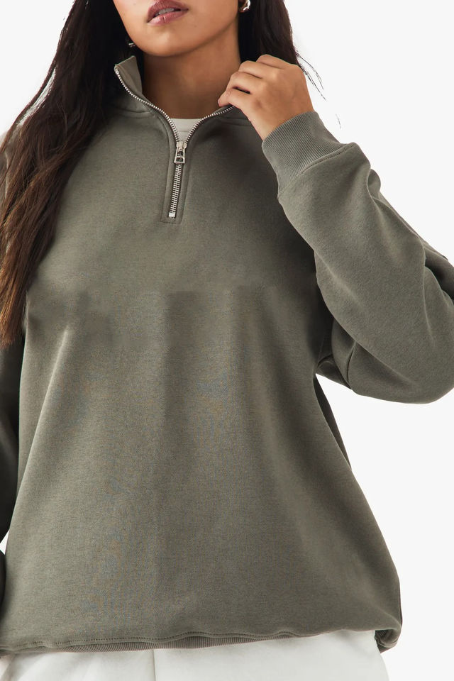 ชุดวอร์มผู้หญิงคุณภาพสูง ผ้าฝ้าย 100% ทรงหลวม ซิป ¼ ตัว เสื้อสเวตเชิ้ตระบายอากาศดี ซิป ¼ ตัว แต่งลูกไม้ โลโก้สั่งทำได้ ตัดเย็บแบบคอนทราสต์