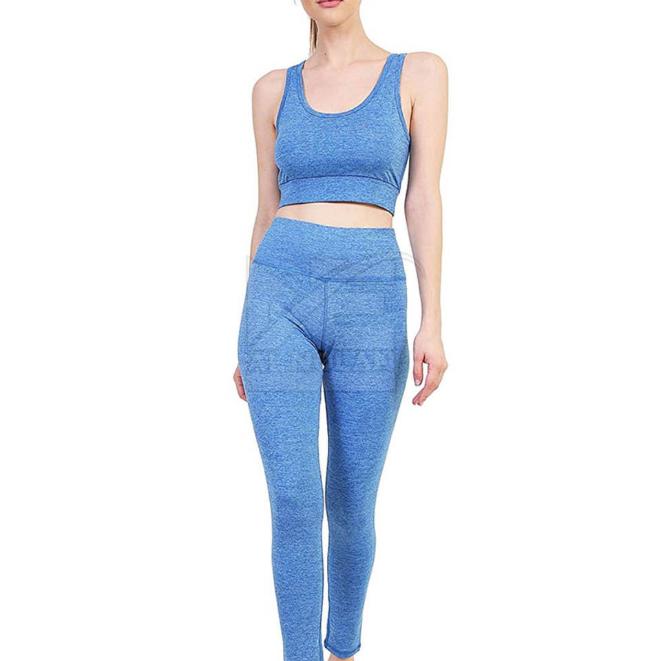 ชุดโยคะไร้รอยต่อ 2 ชิ้น คุณภาพสูงสำหรับผู้หญิง ผ้าสแปนเด็กซ์/โพลีเอสเตอร์ ระบายอากาศได้ดี เอวยางยืด ลายเรียบ สำหรับออกกำลังกายในยิม