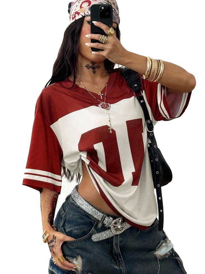 เสื้อเจอร์ซีย์อเมริกันฟุตบอลคุณภาพสูงสำหรับผู้หญิง ผ้าระบายอากาศ พิมพ์ลายแบบซับลิเมชั่น สไตล์สตรีทแวร์