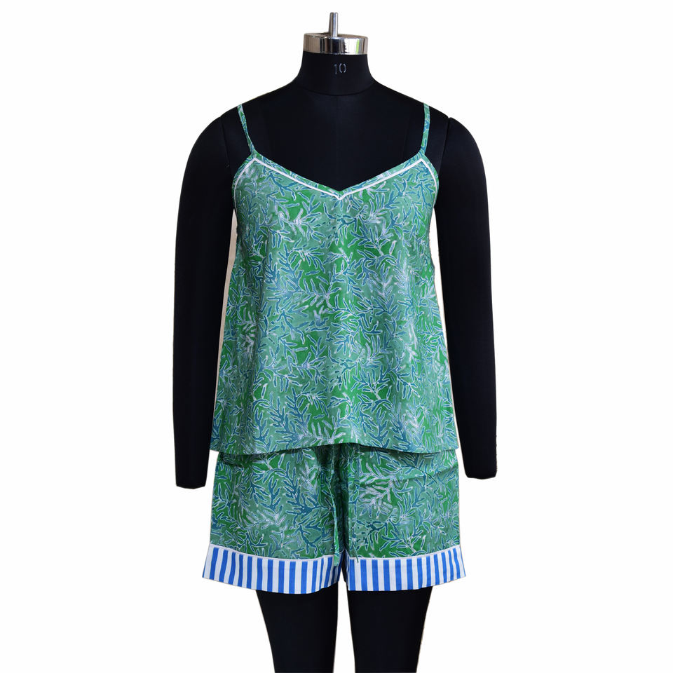 ชุดนอนลายดอกและวันหยุดของผู้หญิงลายต้นมะพร้าว
