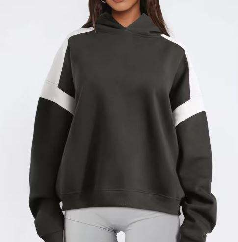 เสื้อฮู้ดแขนยาวโอเวอร์ไซส์ของผู้หญิง, ดีไซน์เปิดไหล่เสื้อกีฬาลำลองใส่ได้ทุกวันหลากสี