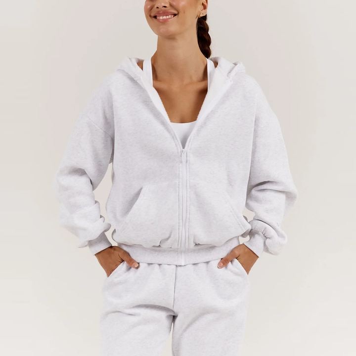 ชุดกีฬาขนแกะสองชิ้นสำหรับผู้หญิงชุดวอร์มแนวสปอร์ตขนแกะขนาดใหญ่พิเศษออกแบบได้ตามต้องการสำหรับฤดูร้อนแบบลำลอง