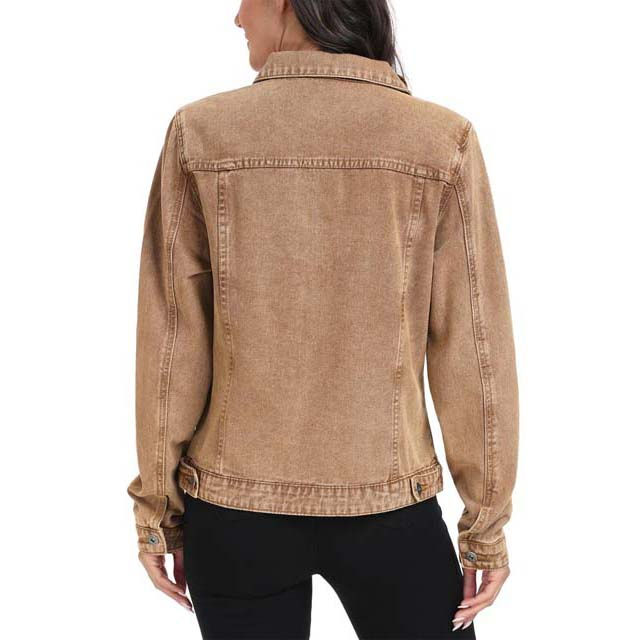 เสื้อแจ็คเก็ตยีนส์คุณภาพสูงสำหรับผู้หญิง เสื้อโค้ทฤดูใบไม้ร่วงและฤดูหนาวแบบสั่งทำพิเศษ พร้อมผ้าทอ ย้อมสีพื้น สีตามสั่ง ปิดกระดุม