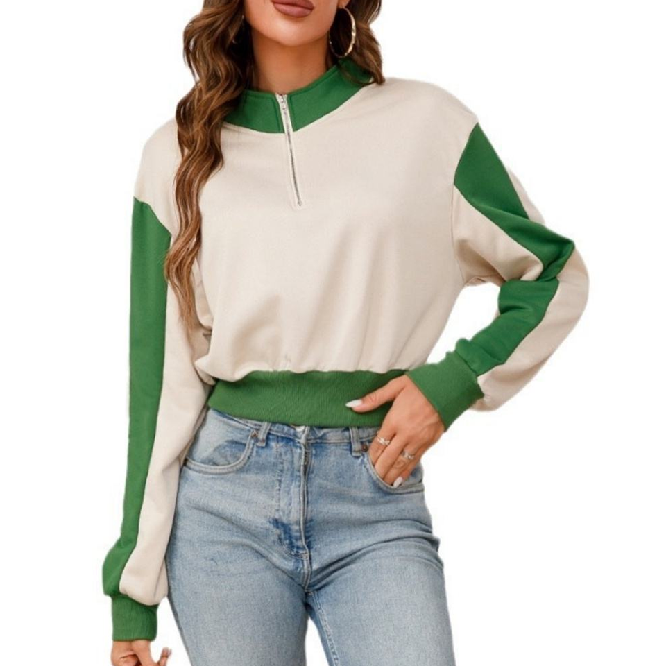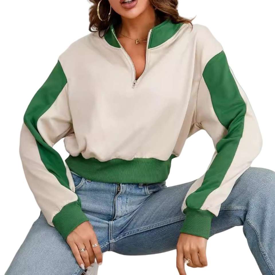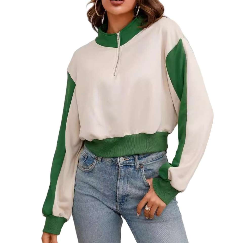 เสื้อฮู้ดผู้หญิงคุณภาพสูง คอตั้ง แขนยาว ซิปครึ่งตัว ทรงหลวม สวมใส่สบาย ระบายอากาศได้ดี เหมาะสำหรับฤดูใบไม้ผลิ ผลิตแบบ ODM