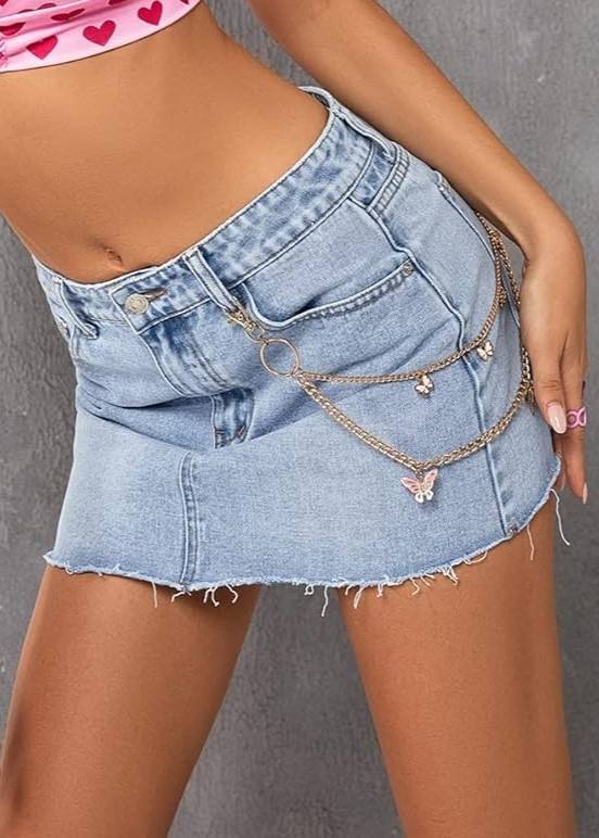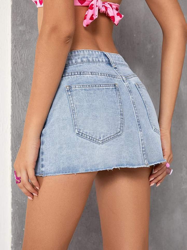 กระโปรงยีนส์ลำลองสีเขียวคุณภาพสูงสำหรับผู้หญิง ลายปักพิมพ์ ดีไซน์ผ่าข้าง ดูหรูหรา สไตล์ดิสเทรส แห้งเร็ว ระบายอากาศได้ดี