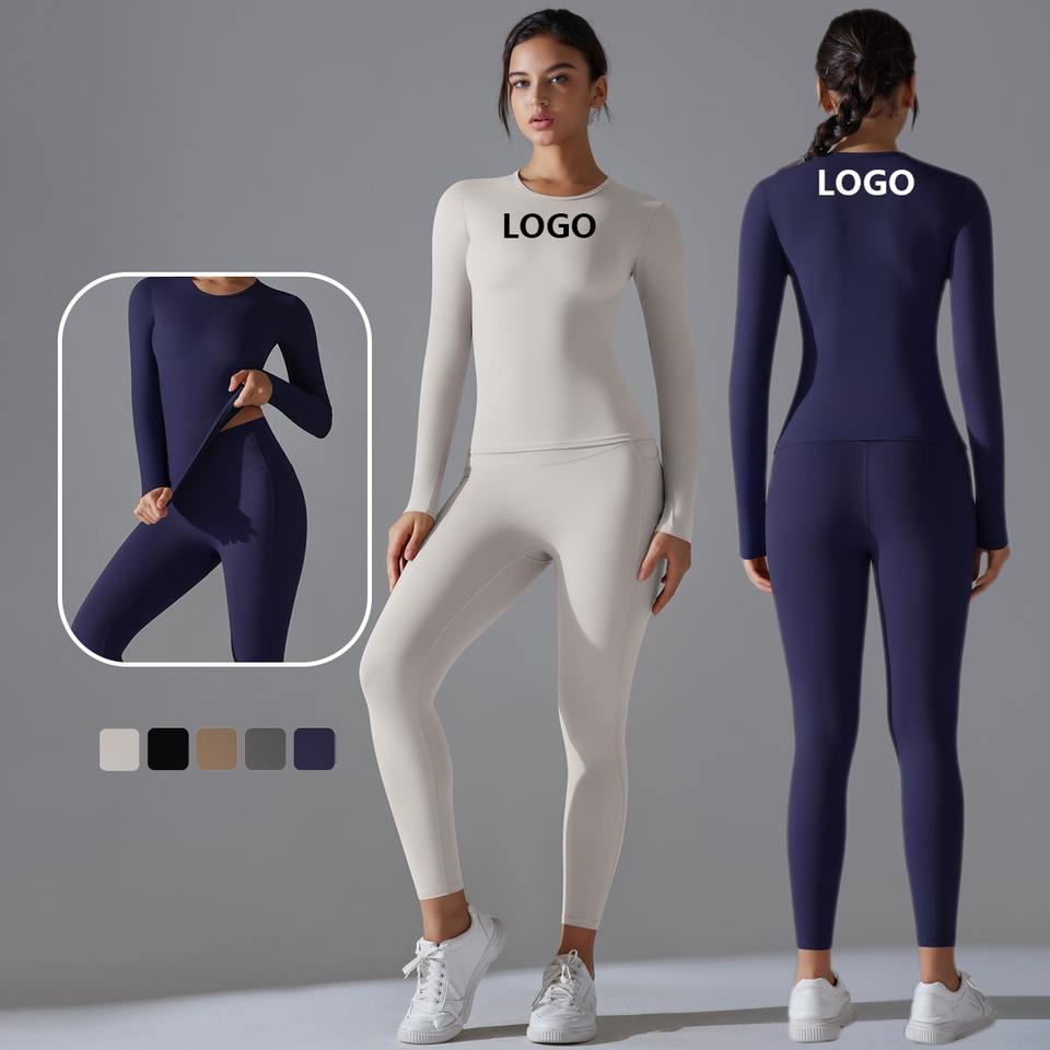 ชุดออกกำลังกายระบายอากาศได้ดีคุณภาพสูงของผู้หญิงชุดโยคะแขนยาวสีพื้นชุดสร้างยิมสำหรับใช้ในยิม