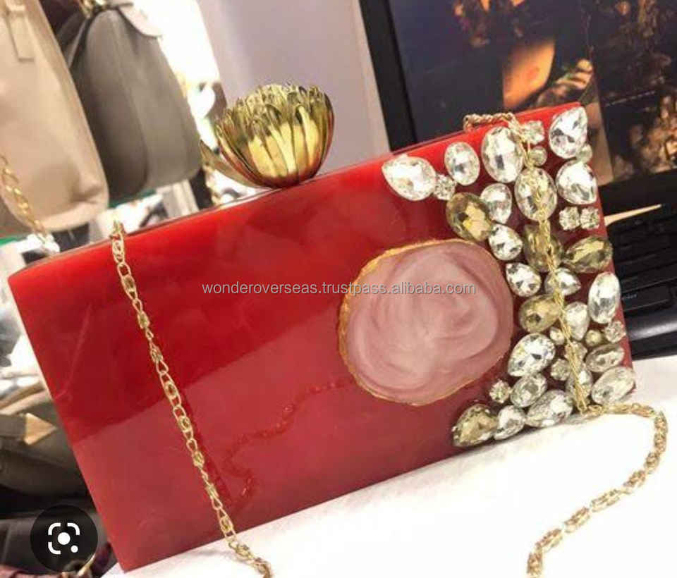 Women's High Quality Resin Clutches Handbag Diamond Embellished Vintage Fashion Style Work Party Summer Handmade WONDER OVERSEAS