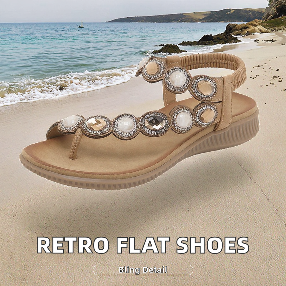 รองเท้าแฟชั่นฤดูร้อนแบบเรโทรคุณภาพสูงสำหรับผู้หญิง ประดับคริสตัลที่หัวรองเท้า เหมาะสำหรับวันหยุดริมทะเล สวมใส่สบาย ไซส์ใหญ่ น้ำหนักเบา นุ่มเท้า