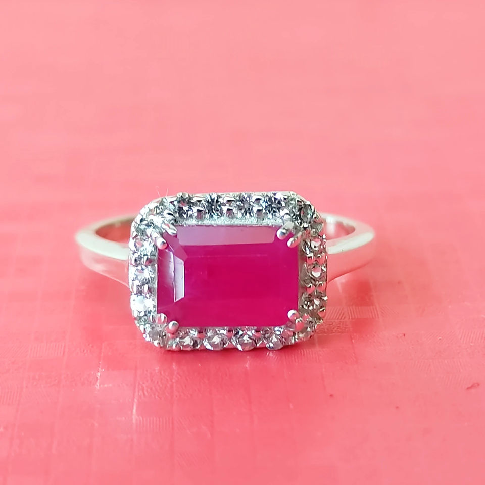 แหวน925ประดับพลอยรูปแปดเหลี่ยมและทับทิมสีขาวดีไซน์ล่าสุดสำหรับงานแต่งงานขายส่งแหวนพลอยรูปแปดเหลี่ยมสำหรับผู้หญิงคุณภาพสูง