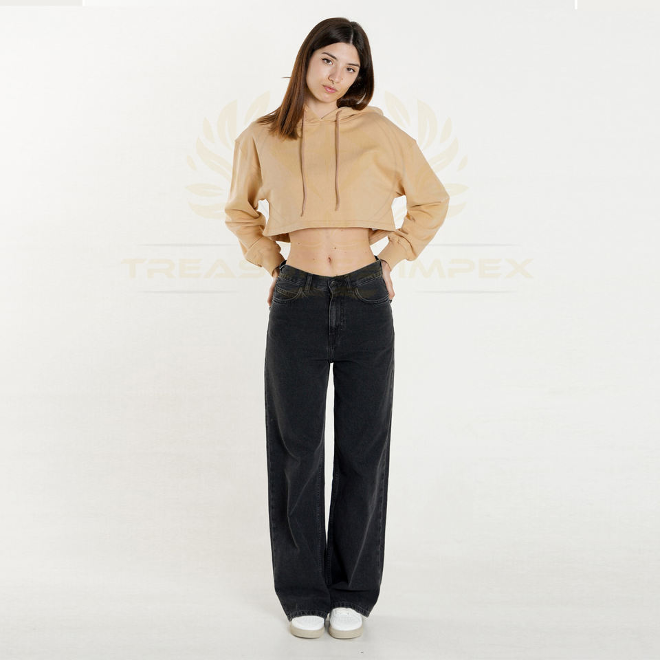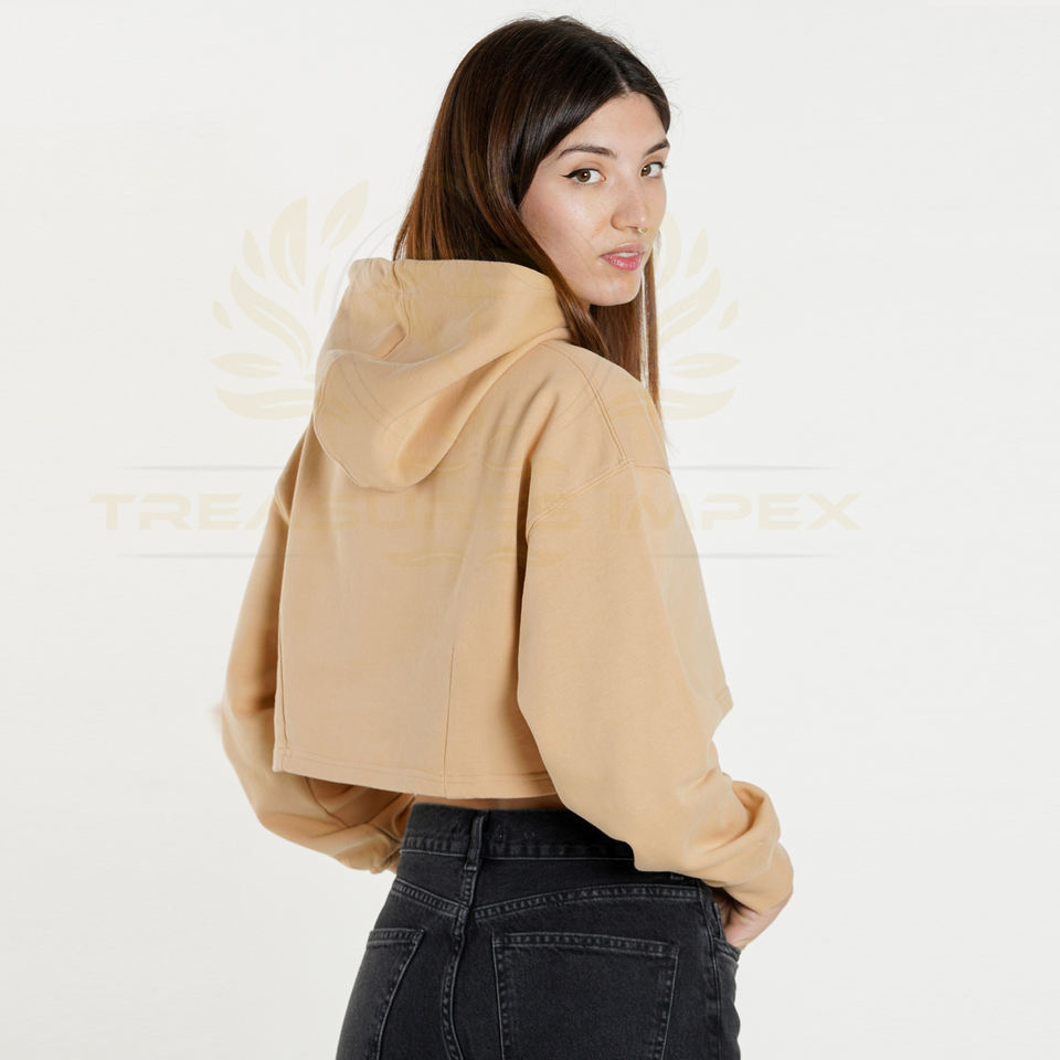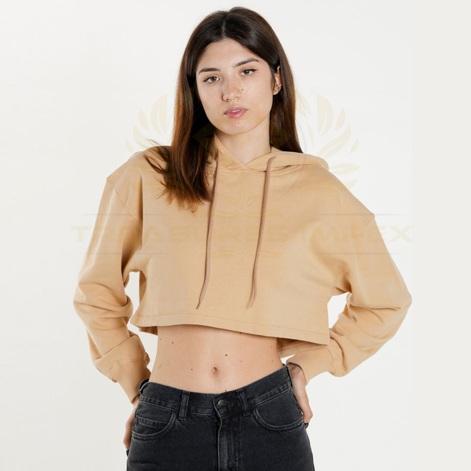 เสื้อฮู้ดครอปผู้หญิงคุณภาพสูงสำหรับฤดูหนาว แขนยาว ผ้าฝ้ายฟลีซ มีเชือกผูก โลโก้ปัก ระบายอากาศได้ดี ซับเหงื่อ