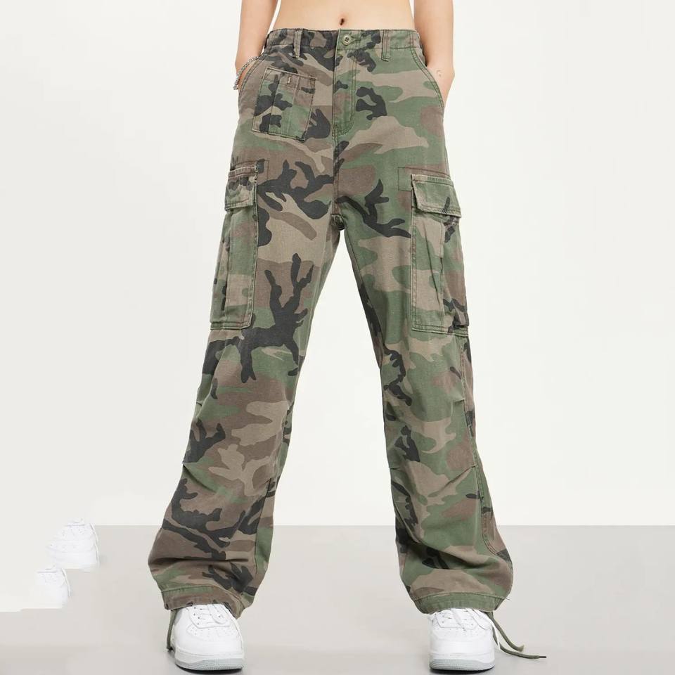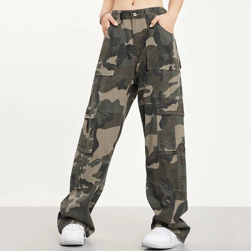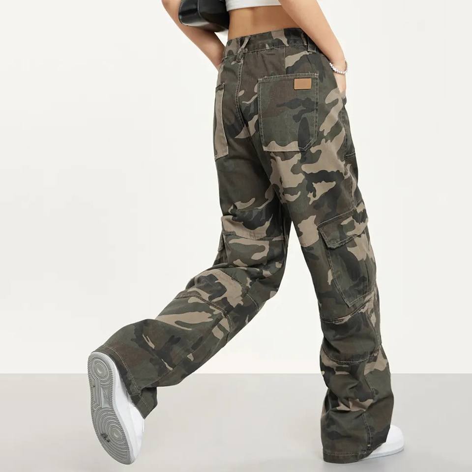กางเกงคาร์โก้ขาตรงเอวสูงสำหรับผู้หญิงผ้าคอตตอน100% ระบายอากาศได้ทรงหลวมปรับเอวได้สำหรับฤดูหนาว