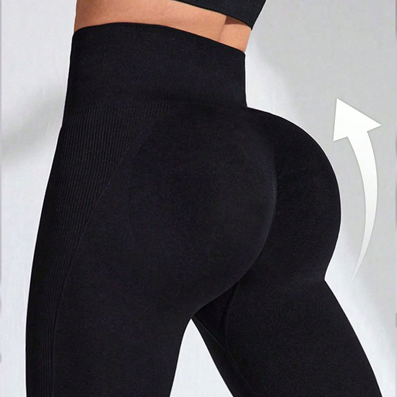 กางเกงเลกกิ้งโยคะเอวสูงสำหรับผู้หญิง ผ้าเนื้อนุ่มไร้รอยต่อ เหมาะสำหรับออกกำลังกายและวิ่งจ๊อกกิ้ง เอวยางยืด ลายเรียบ