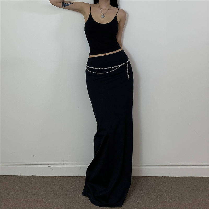 กระโปรงแม็กซี่เอวสูงสีน้ำตาลสำหรับผู้หญิง ผ่าหลัง ทรงเข้ารูป กระโปรงยาว สไตล์มินิมอล ลำลอง ใส่ทำงานได้ สวยสง่า สำหรับฤดูใบไม้ร่วงและฤดูหนาว