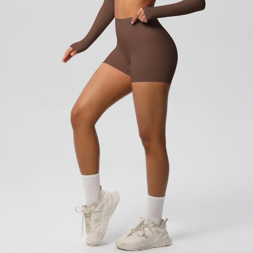 กางเกงขาสั้นเอวสูงสำหรับผู้หญิงกางเกงสามส่วนสำหรับวิ่งและยกสะโพก