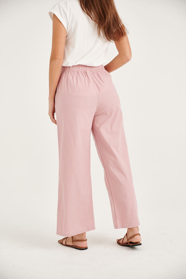 กางเกงผ้าลินินผ้าฝ้ายสีชมพูสำหรับเด็ก