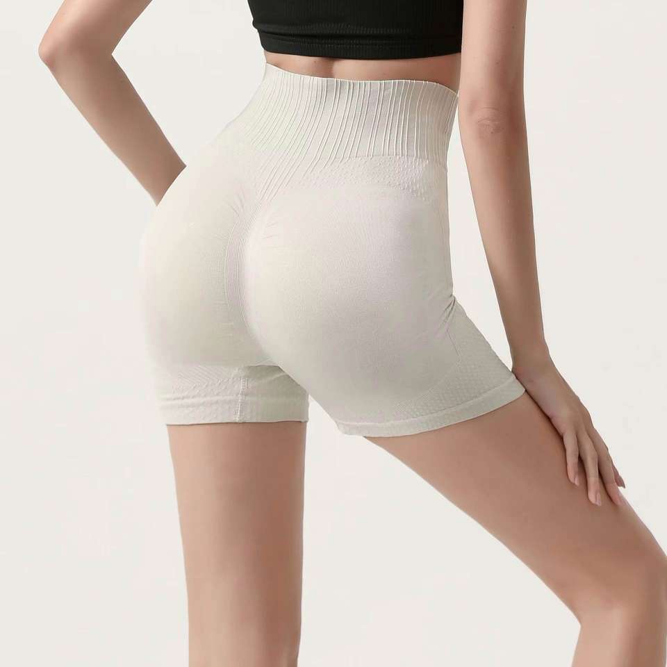 กางเกงโยคะขาสั้นเอวสูงสำหรับผู้หญิง ผ้ายืดกระชับหน้าท้อง แห้งเร็ว ไร้ตะเข็บ ทรงขาบาน ผลิตจากผ้าสแปนเด็กซ์/ไนลอน