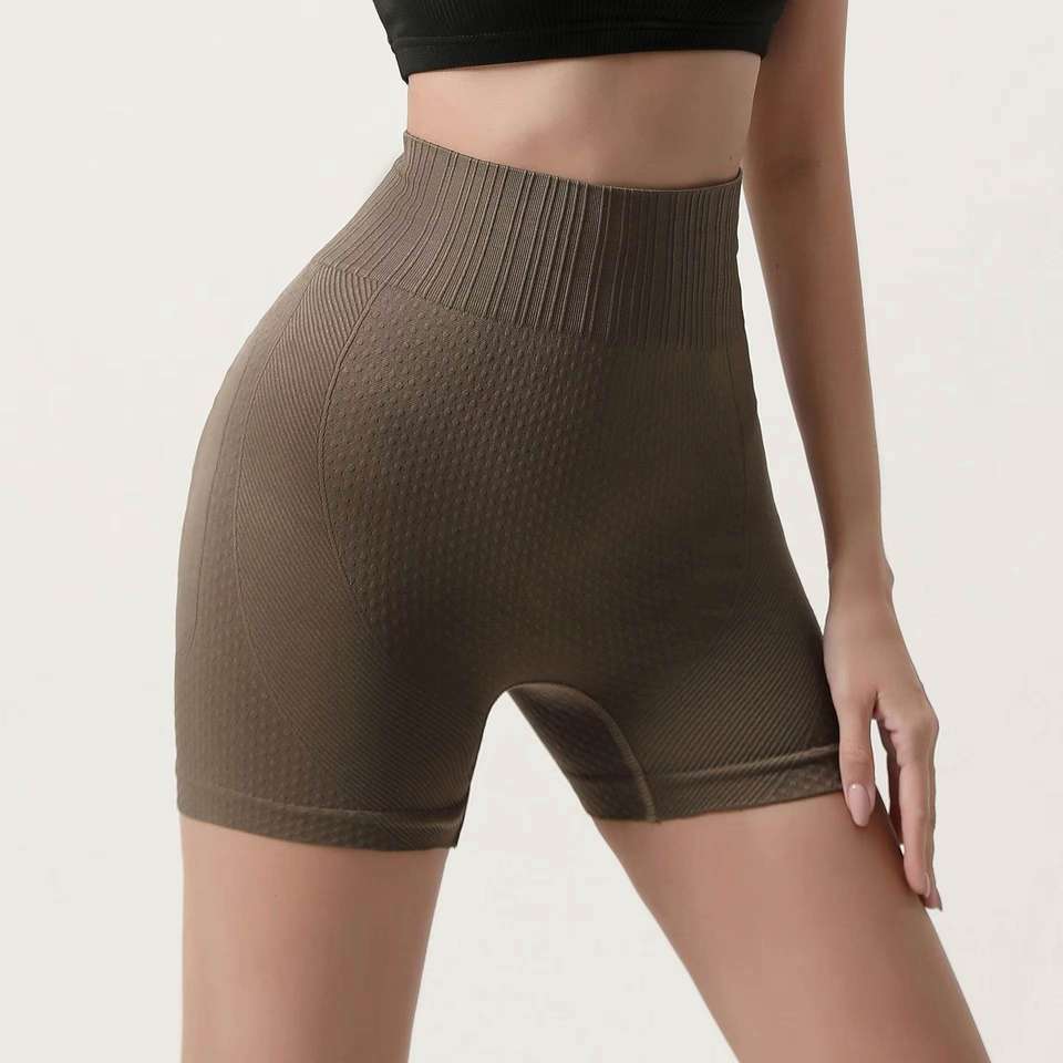 กางเกงโยคะขาสั้นเอวสูงสำหรับผู้หญิง ผ้ายืดกระชับหน้าท้อง แห้งเร็ว ไร้ตะเข็บ ทรงขาบาน ผลิตจากผ้าสแปนเด็กซ์/ไนลอน