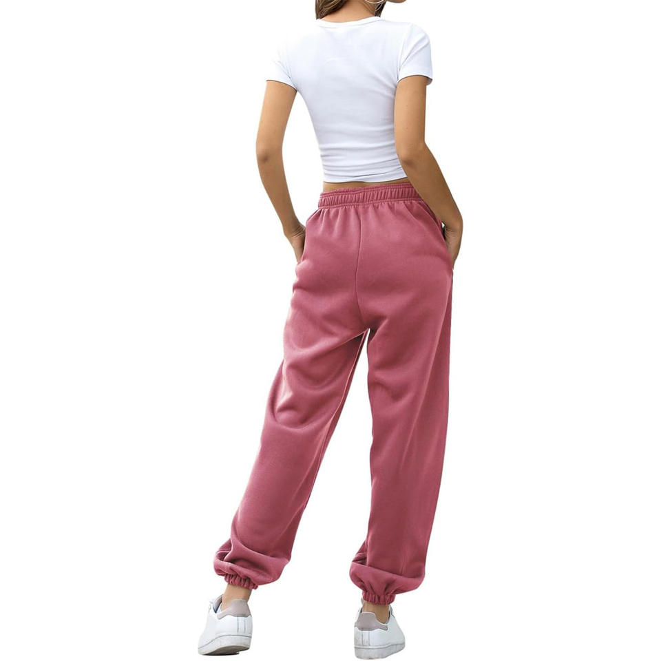 กางเกงวิ่งออกกำลังกายเอวสูงของผู้หญิงกางเกงขากว้างแบบลำลองมีเชือกรูดยืดหยุ่นกางเกงกีฬา