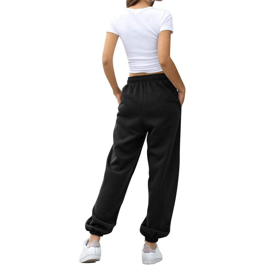 กางเกงวิ่งออกกำลังกายเอวสูงของผู้หญิงกางเกงขากว้างแบบลำลองมีเชือกรูดยืดหยุ่นกางเกงกีฬา