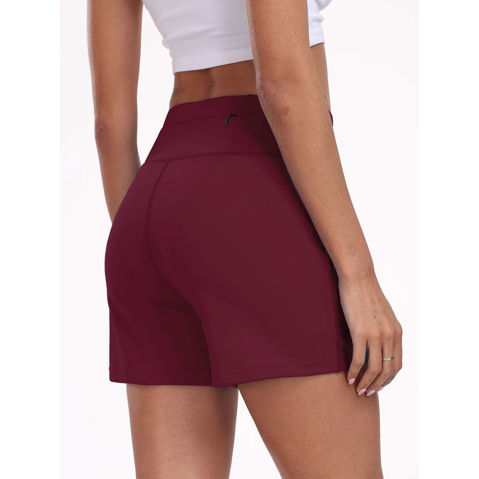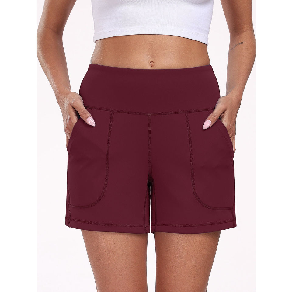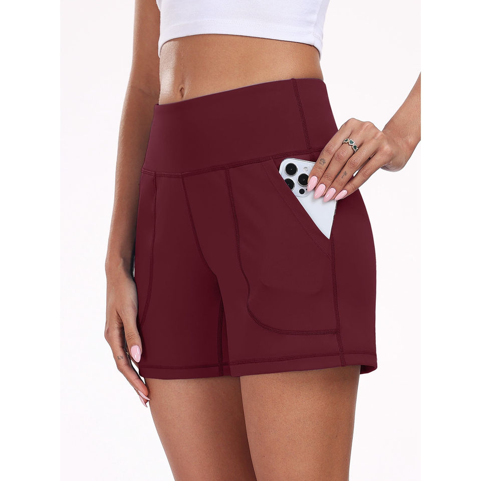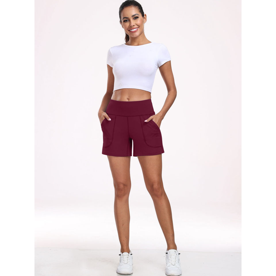 กางเกงขาสั้นออกกำลังกายเอวกลางสำหรับผู้หญิง มีกระเป๋า ผ้าฝ้าย 100% ระบายอากาศ แห้งเร็ว เป็นมิตรกับสิ่งแวดล้อม เหมาะสำหรับฟิตเนส โยคะ กีฬา วิ่งกลางแจ้ง