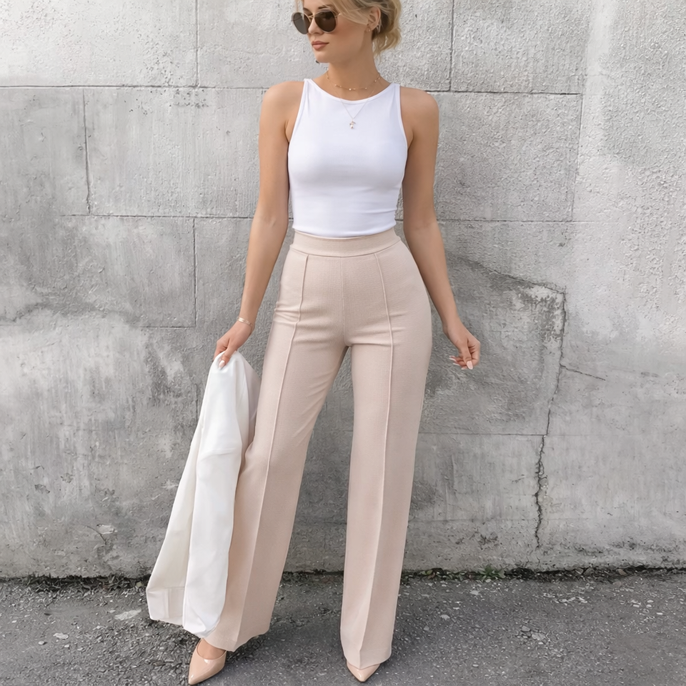 กางเกงขายาวเอวสูงสำหรับผู้หญิง ระบายอากาศได้ดี ทรงหลวม ใส่ได้หลายโอกาส กางเกงทรงตรงลำลองสำหรับฤดูร้อน กางเกงลำลองสั่งตัดได้ ชุดเดรสลำลองสำหรับผู้หญิง