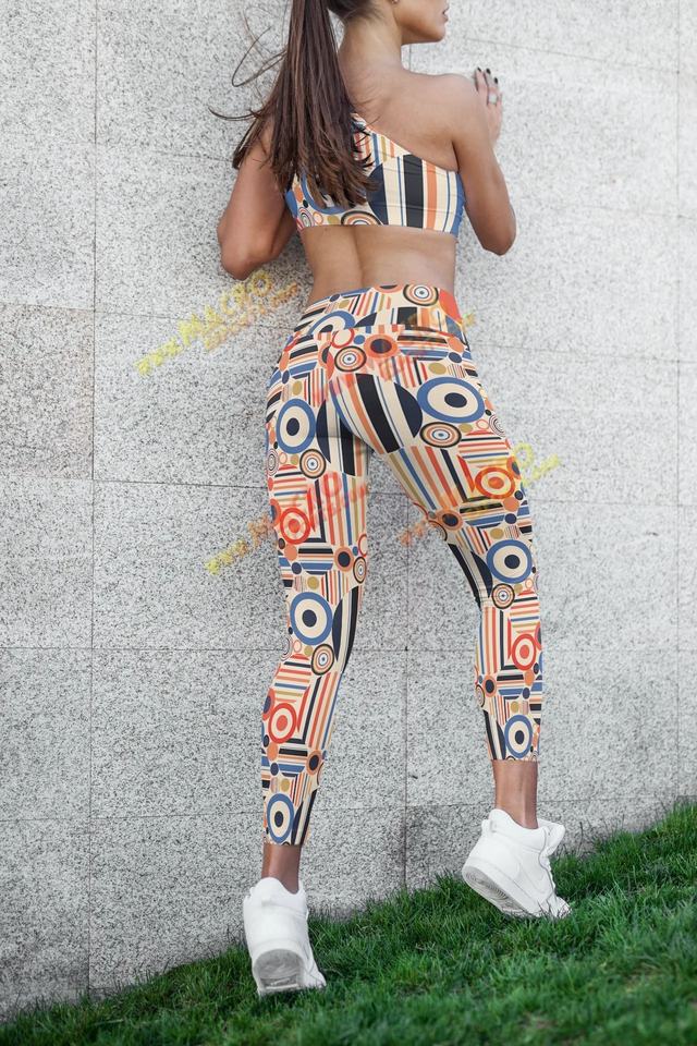 กางเกงโยคะไร้ตะเข็บผ้าโพลีเอสเตอร์/ สแปนเด็กซ์เอวสูงสำหรับผู้หญิงเลกกิ้งพร้อมส่งเสื้อผ้ายิมซับลิเมชัน