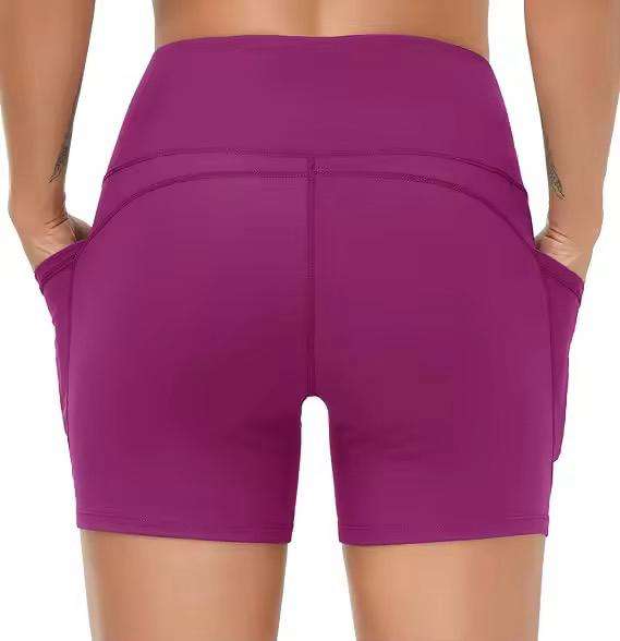 กางเกงโยคะขาสั้นเอวสูงแห้งเร็วของผู้หญิงกางเกงขาสั้นลำลองผ้ายืดมีลายสีพื้นสำหรับเล่นกีฬา