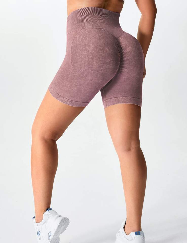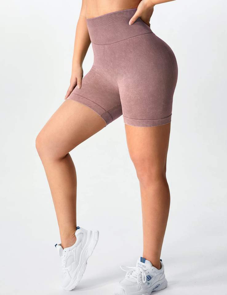 กางเกงโยคะขาสั้นไร้ตะเข็บเอวสูงของผู้หญิงเลกกิ้งออกกำลังกายแบบผ้าสแปนเด็กซ์/ ไนลอนแบบรีไซเคิล