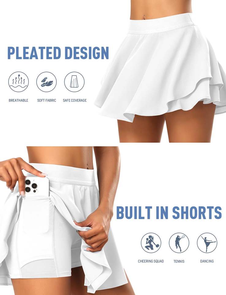 กางเกงขาสั้นเอวสูงสำหรับผู้หญิง ตกแต่งด้วยลูกไม้ เหมาะสำหรับฟิตเนส เทนนิส แบดมินตัน กอล์ฟ และวิ่ง กระโปรงกีฬาสำหรับเด็กผู้หญิง