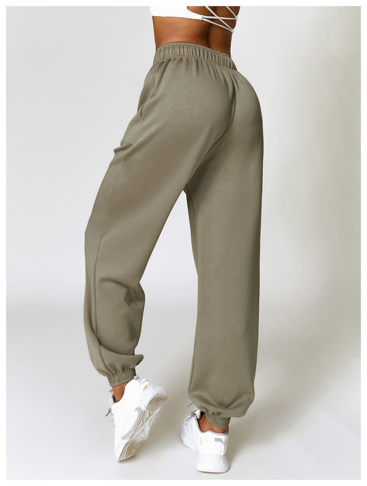 กางเกงจ็อกเกอร์ผู้หญิงเอวสูงทรงสปอร์ตฟิตเนส ทรงปกติ ระบายอากาศได้ดี เหมาะสำหรับฤดูหนาว ผ้าฝ้าย 100% มีเชือกผูก จับจีบด้านหน้า