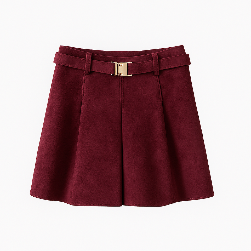 กระโปรงสั้นหนังนิ่มเอวสูงสำหรับผู้หญิงกระโปรงสั้นหนังนิ่มมีเข็มขัดสำหรับฤดูใบไม้ร่วงและฤดูหนาว